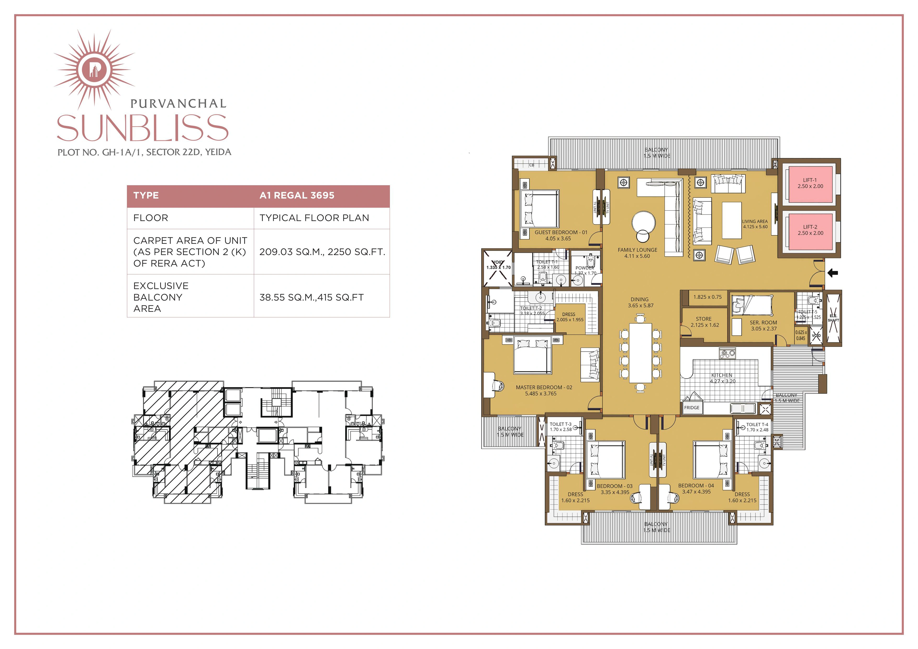 | CARPET AREA OF UNIT | 209.03 SQ.M., 2250 SQ.FT. |