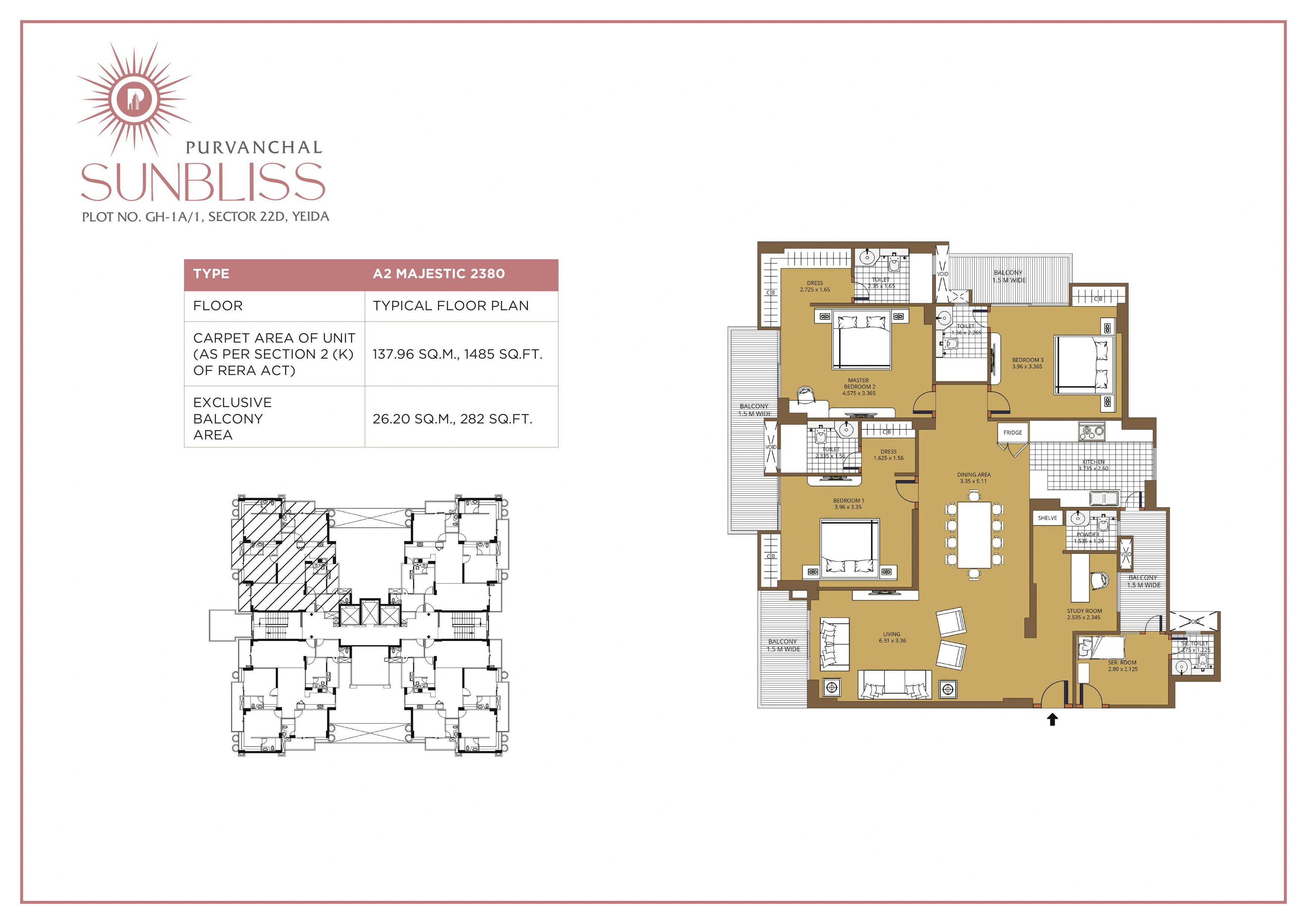 | CARPET AREA OF UNIT | 137.96 SQ.M., 1485 SQ.FT. |