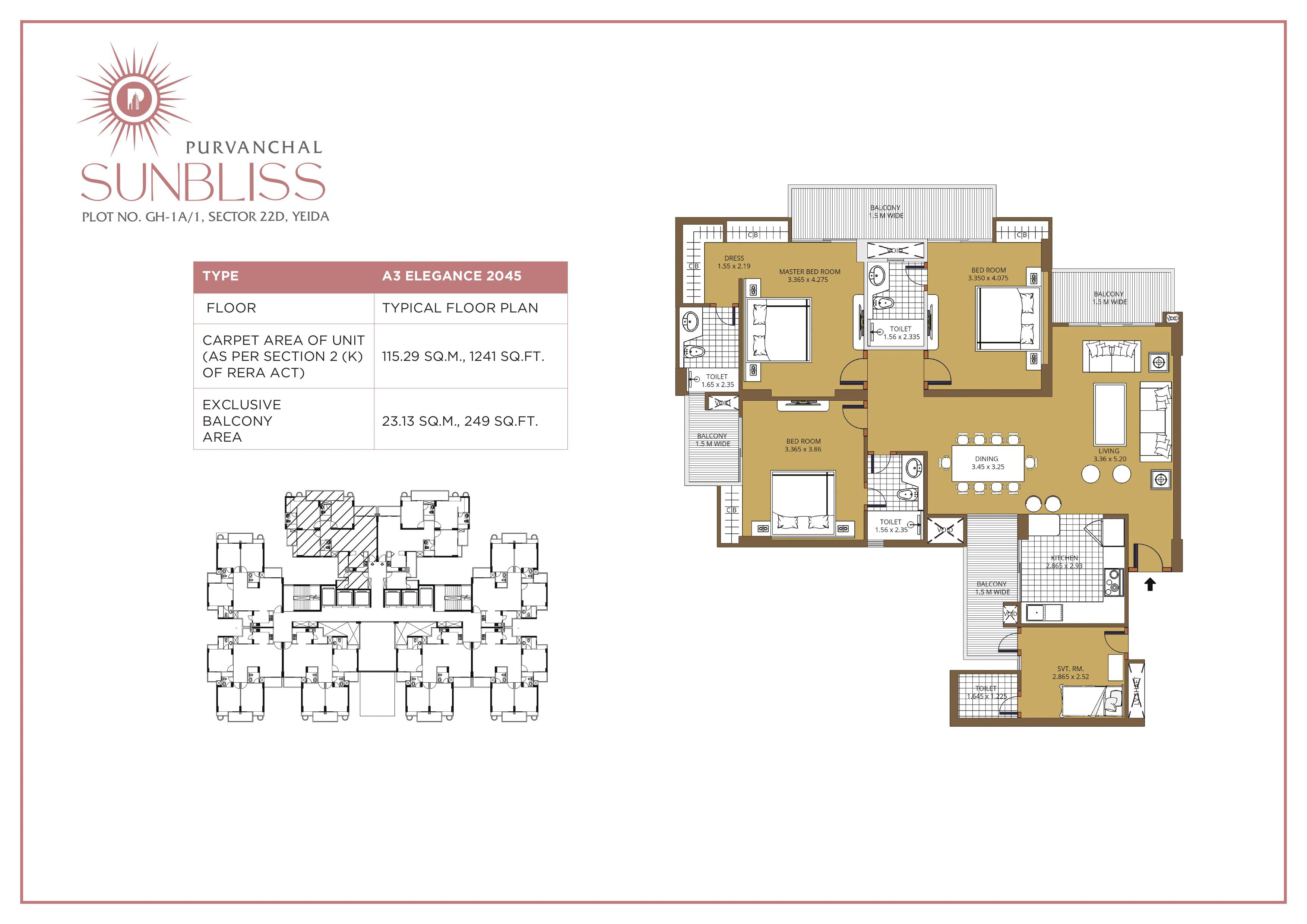 | CARPET AREA OF UNIT | 115.29 SQ.M., 1241 SQ.FT. |