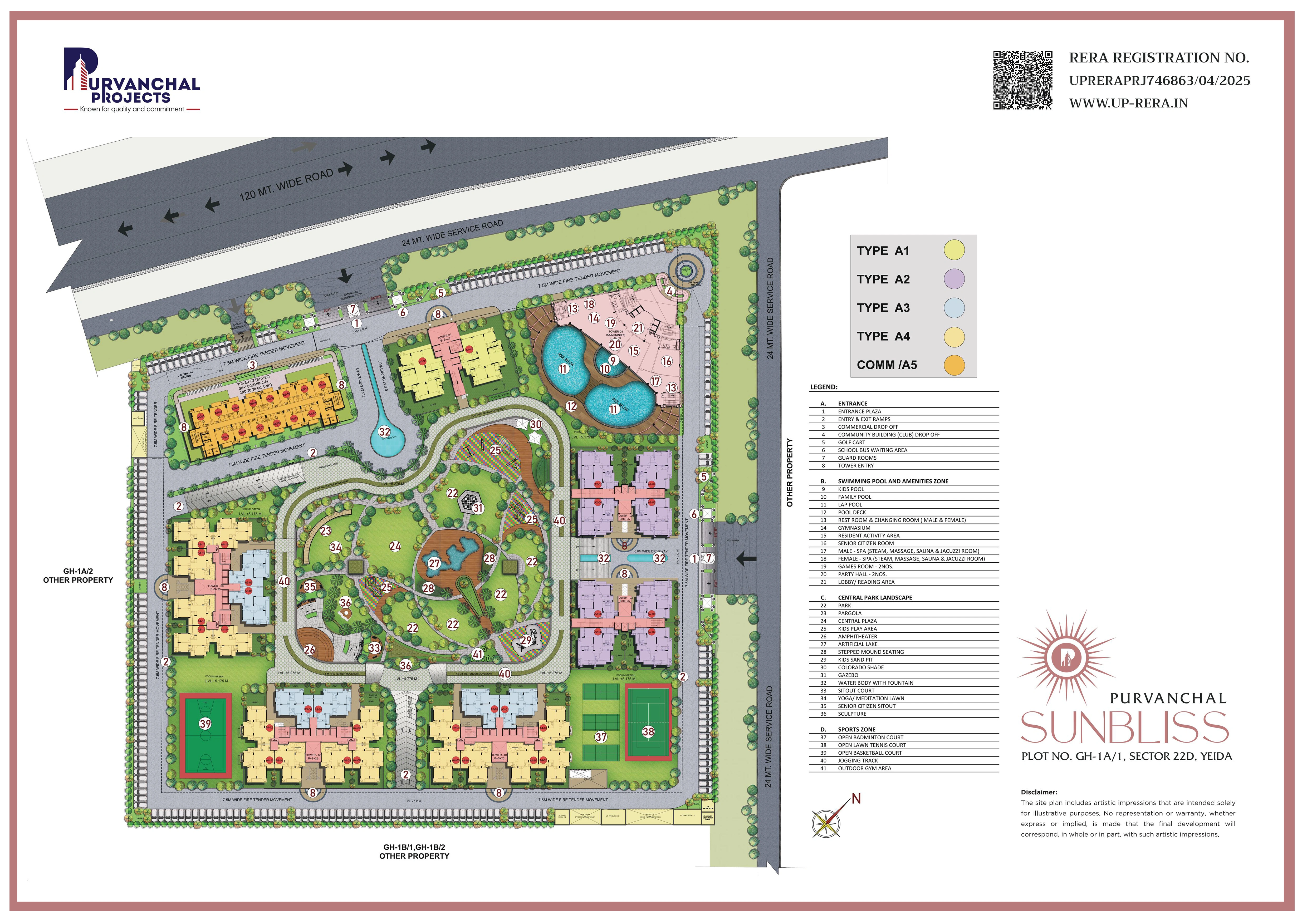 Thoughtfully segregated zones for Entrance, Amenities, Central Landscape, and Sports, ensuring comfort and privacy.
